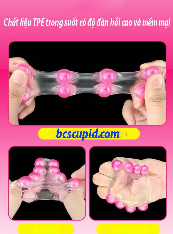 Kích thước sử dụng 2.5cm đôn dày ra thêm 1.6cm với 12 viên bi siêu bự mềm mại dọc thân bao, massage chuyên sâu bên trong