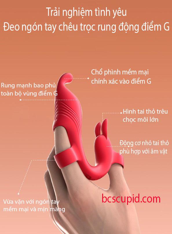 Một sản phẩm đeo ngón tay hoàn toàn mới kết hợp cùng với 2 máy rung 9 tần số giúp cho nàm dạo đầu củng như kích thích điểm G được nhiều và thoải mái hơn, với thiết kế tiện lợi xỏ 2 ngón tay dể dàng mang theo và vệ sinh