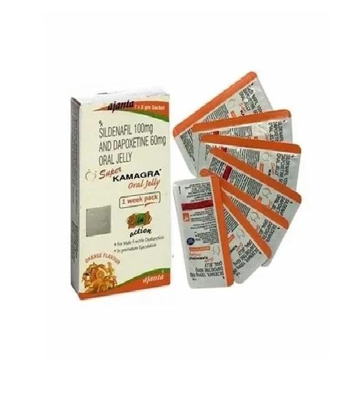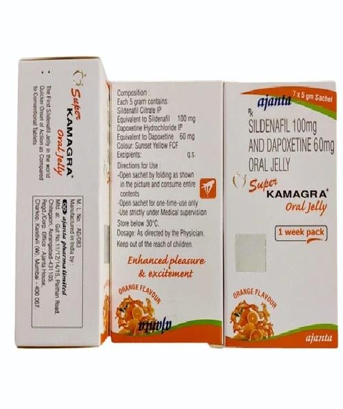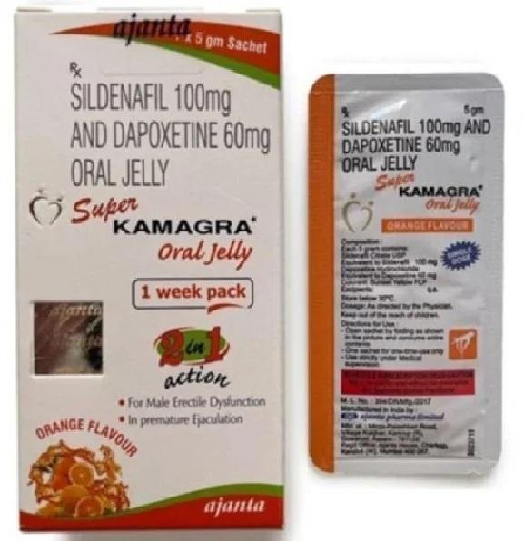 Thạch vị cam Super Kamara Oral Jelly chứa 2 hoạt chất sildeafil 100mg và dapoxetine 60mg: Giúp cương cứng đồng thời kéo dài thời gian quan hệ cho nam giới